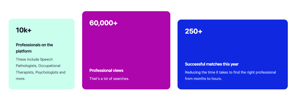 10 k+ professionals, 60 k+ profile views, 250+ successful matches (see snapshot below)